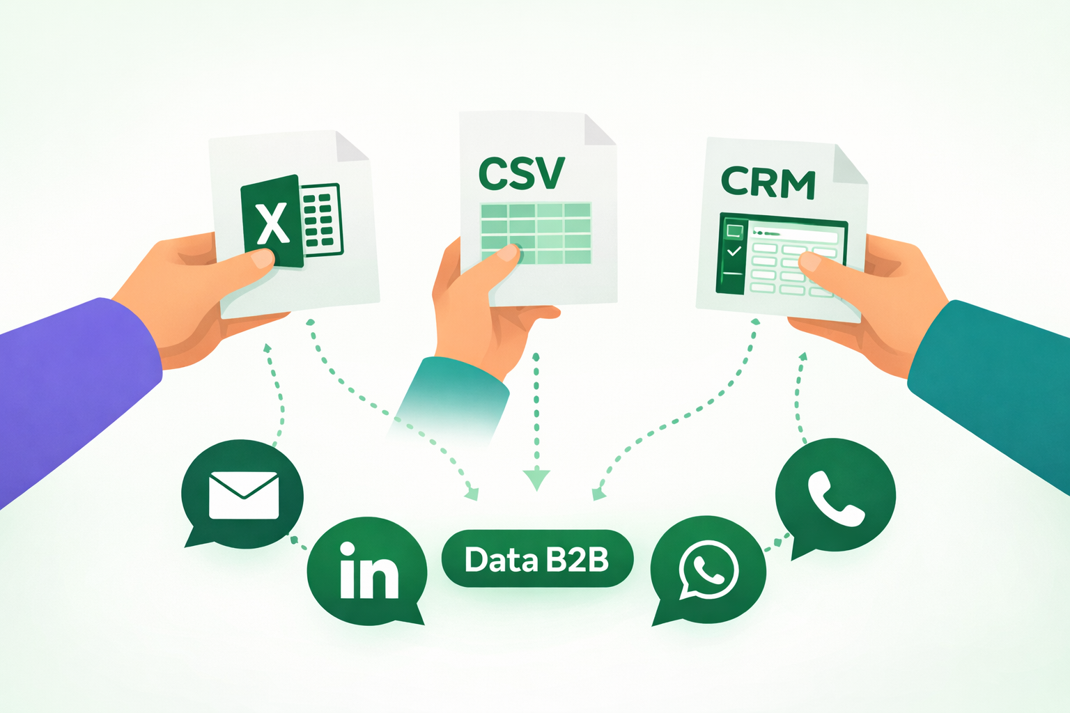 Excel, CSV o CRM-ready para lanzar tus campañas en email, LinkedIn, llamadas o WhatsApp.